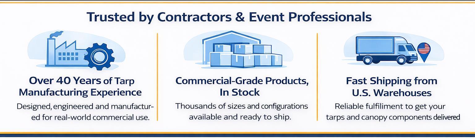 We offer a wide selection of canopy tents, replacement canopy covers, heavy-duty tarps, and accessories designed for outdoor protection, storage, events, construction, and agricultural use.