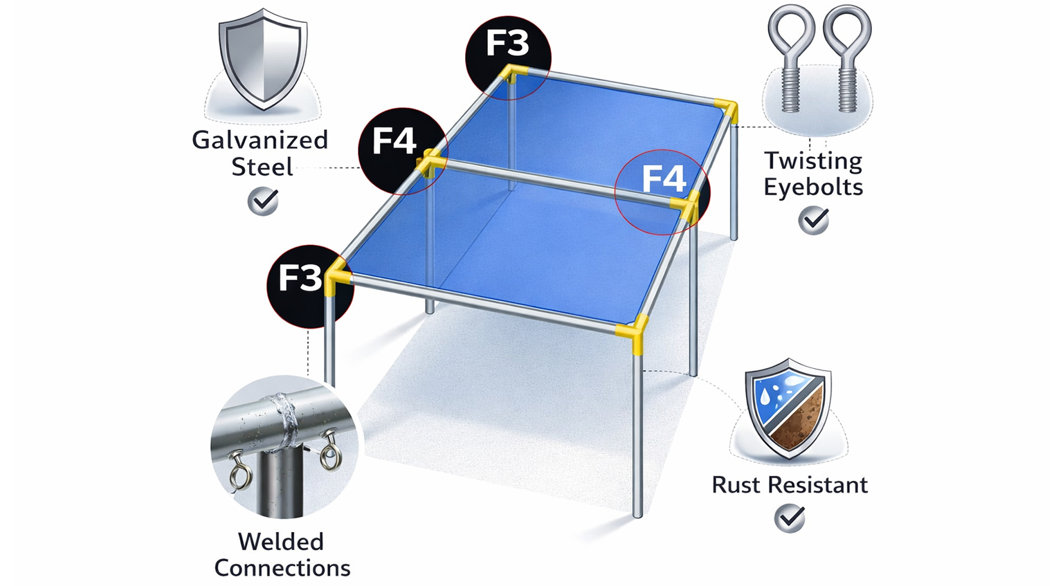 SALE Quick view 1 7/8" Flat Roof Side Fitting(F4) 1 7/8" Galvanized Steel Side Fitting For Flat Roof Structures, Welded Connections, 90 Degree Angle With Eyebolts. (Fitting inside diameter is 2") MSRP: Was: $55.12 Now: $27.56 Add to Cart Compare SALE Quick view 1 5/8" 6-Way Center Fitting(F6) 1 5/8" Galvanized Steel 6-Way Center Fitting For Flat Roof Structures, Welded Connections, 90 Degree Angle With Eyebolts MSRP: Was: $55.36 Now: $27.68 Add to Cart Compare SALE Quick view 1 7/8" Flat Roof Center Fitting(F5) 1 7/8" Galvanized Steel Center Fitting For Flat Roof Structures, Welded Connections, 90 Degree Angle With Eyebolts. (Fitting inside diameter is 2") MSRP: Was: $68.64 Now: $34.32 Add to Cart Compare SALE Quick view 1-7/8" 6-Way Center(F6) 1-7/8" Galvanized Steel 6-Way Center Fitting For Flat Roof Structures, Welded Connections, 90 Degree Angle With Eyebolts MSRP: Was: $81.80 Now: $40.90 Add to Cart Compare Compare Selected Flat roof canopy fittings from Canopies and Tarps are a well-built, essential component of your custom-built structure. Our high-quality, heavy-duty tarps already do an outstanding job of protecting property. However, over the last 30 years, we have seen customers use tarps in so many different ways that we knew we needed to offer canopy fittings that were just as strong and durable to fit a variety of structures. Our flat roof canopy fittings with 90-degree angles allow you to build a flat roof canopy for use as a shelter, storage spot and more. We offer a large selection of flat roof corner fittings, flat roof center fittings and more. Whether you need a 3-, 4-, 5- or 6-way fitting, we have what you need in our selection. Canopy Fittings That Are Made to Last Made with strong galvanized steel, these fittings feature welded joints for even more durability. They are equipped with eye bolts for easy assembly - you may not even need tools to build a perfect structure. Available in several widths for varying degrees of stability and strength, these canopy fittings are built to protect your property, season after season. Contact our canopy frame experts today to learn more about how we can help you build the structure you need. We have over 30 years of experience helping our customers find the right tarps, fittings and more. × OK