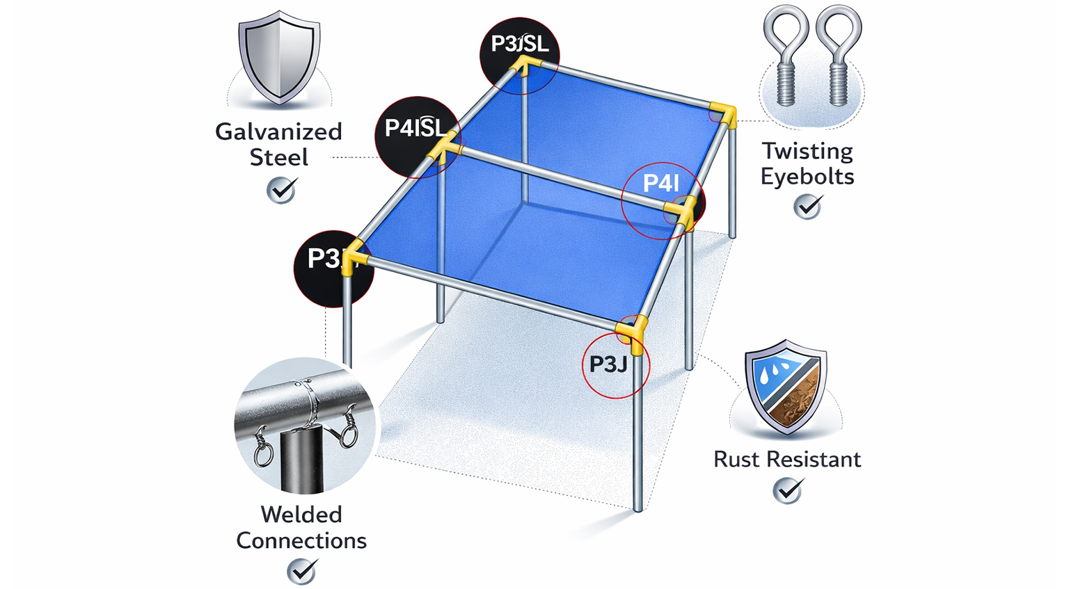 SALE Quick view 1 5/8" Low Peak Corner(FP3J) Canopy frame fittings and pipes from Canopies and Tarps give you everything you need to create a shelter to protect your property. Our philosophy for more than 25 years has been to offer quality, long-lasting tarps, and we apply the same philosophy to... MSRP: Was: $30.80 Now: $15.40 Add to Cart Compare SALE Quick view 1-5/8" 3-Way Peak Corner Slope Down (FW3JSL) 1 5/8" Galvanized Steel 3-Way Corner Fitting For Slope Down Peak Roof Structures, Welded Connections, 102 Degree Angle With Eyebolts. (Fitting inside diameter is 1-3/4") MSRP: Was: $30.80 Now: $15.40 Add to Cart Compare SALE Quick view 1-5/8" 4-Way Right Side Slope Down (FP4M) Slope fittings are made out of galvanized steel and contain welded connections. The slope fitting features a 102 Degree Angle and includes locking eyebolts. (Fitting inside diameter is 1-3/4") MSRP: Was: $30.80 Now: $15.40 Add to Cart Compare SALE Quick view 1-3/8" 5-Way Center Slope Down (FP5G) 1 3/8" Galvanized Steel 5-Way Center Fitting For Slope Down Peak Roof Structures, Welded Connections, 102 Degree Angle With Eyebolts. (Fitting inside diameter is 1-3/8") MSRP: Was: $35.72 Now: $17.86 Add to Cart Compare SALE Quick view 1 5/8" 4-Way Peak Center Slope Down (P4ISL) Slope fittings are made out of galvanized steel and contain welded connections. The slope fitting features a 102 Degree Angle and includes locking eyebolts. (Fitting inside diameter is 1-3/4") MSRP: Was: $41.68 Now: $20.94 Add to Cart Compare SALE Quick view 1 5/8" Low Peak Side(FP4I) Count on Canopies and Tarps for canopy frame pipe fittings and connectors that let you easily build strong structures. We've seen so many clever ways tarps have been used by property owners, so we knew that what they really needed were high-quality tarps... MSRP: Was: $41.88 Now: $20.94 Add to Cart Compare SALE Quick view 1-5/8" 4-Way Left Side Slope Down (FP4H) Slope fittings are made out of galvanized steel and contain welded connections. The slope fitting features a 102 Degree Angle and includes locking eyebolts. (Fitting inside diameter is 1-3/4") MSRP: Was: $41.88 Now: $20.94 Add to Cart Compare SALE Quick view 1-5/8" 5-Way Center Slope Down (FW5G) 1 5/8" Galvanized Steel 5-Way Center Fitting For Slope Down Peak Roof Structures, Welded Connections, 102 Degree Angle With Eyebolts. (Fitting inside diameter is 1-3/4") MSRP: Was: $56.88 Now: $28.44 Add to Cart Compare Compare Selected Secure your peaked canopy roof with 78-degree angle sloped canopy fittings from Canopies and Tarps. These one-piece galvanized steel 78-degree angled fittings have eyebolts that fit to center or side canopy poles. We have 3/4-in. (inner diameter) four-way center fittings welded at each connection with a right-side slope down (FP4M) angle. If you need a three-way 1-in. inner diameter sloped canopy fitting (FP3JSL) that will ensure good drainage of rainwater, consider our FP3JSL sloped canopy fitting. Our 78-degree angled peaked roof canopy fittings include three-way peak corner (FP3J) fittings, 3/4-in. five-way slope down center fittings and 1-in. four-way left side angled slope down (FP4H) fittings. Also find 1-in. angled five-way center angled-down fittings. Inner diameter sizes on our angled 78-degree fittings range upward to 1 5/8 in. In search of other sizes? We carry 102-degree angle slope down fittings ready to ship from our warehouse. Our slope roof canopy frame kit includes three two-piece sloped corner fittings, along with 18-gauge steel pipes (poles), brace supports and other set-up hardware. These frame kits do not include the canopies. If you prefer to order a canopy and downward angled fittings without the frame kit, shop our line of canopy box kits, which include canopies and galvanized steel sloped fittings. These kits do not include frames and installation hardware. At Canopies and Tarps, we offer individual canopy accessories, as well as kits, that will allow you to buy just what you need to replace canopy parts or create a DIY canopy structure. Learn more about our variety of canopy accessories. If you have questions, or just want outside confirmation about the parts and parts numbers for your latest DIY canopy project, contact our staff. × OK