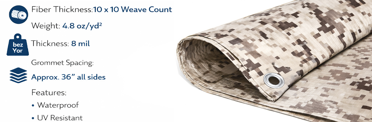 Digital camouflage tarps offer rugged outdoor protection with a tactical pattern designed for concealment and durability. Built for applications where blending into natural surroundings is important, digital camo tarps are ideal for hunting blinds, equipment covers, landscaping, and outdoor storage in wooded or desert environments.