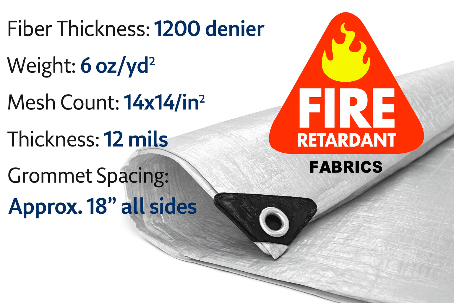 A white fire retardant tarp is designed to resist ignition and slow flame spread while providing waterproof, heavy-duty coverage. These tarps are commonly used in construction, industrial, and event settings where fire safety and weather protection are required.